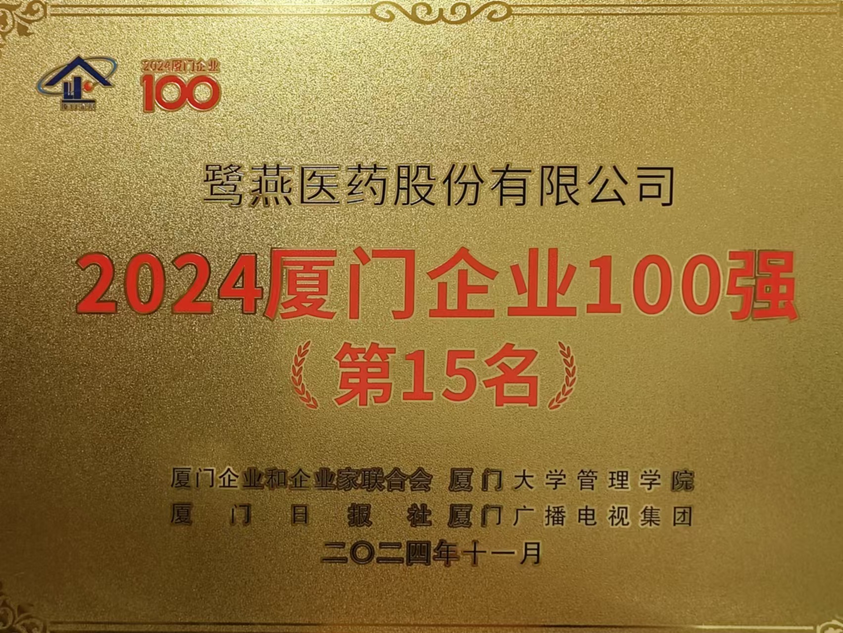 2024廈門企業百強揭曉,鷺燕醫藥榮列第15位!