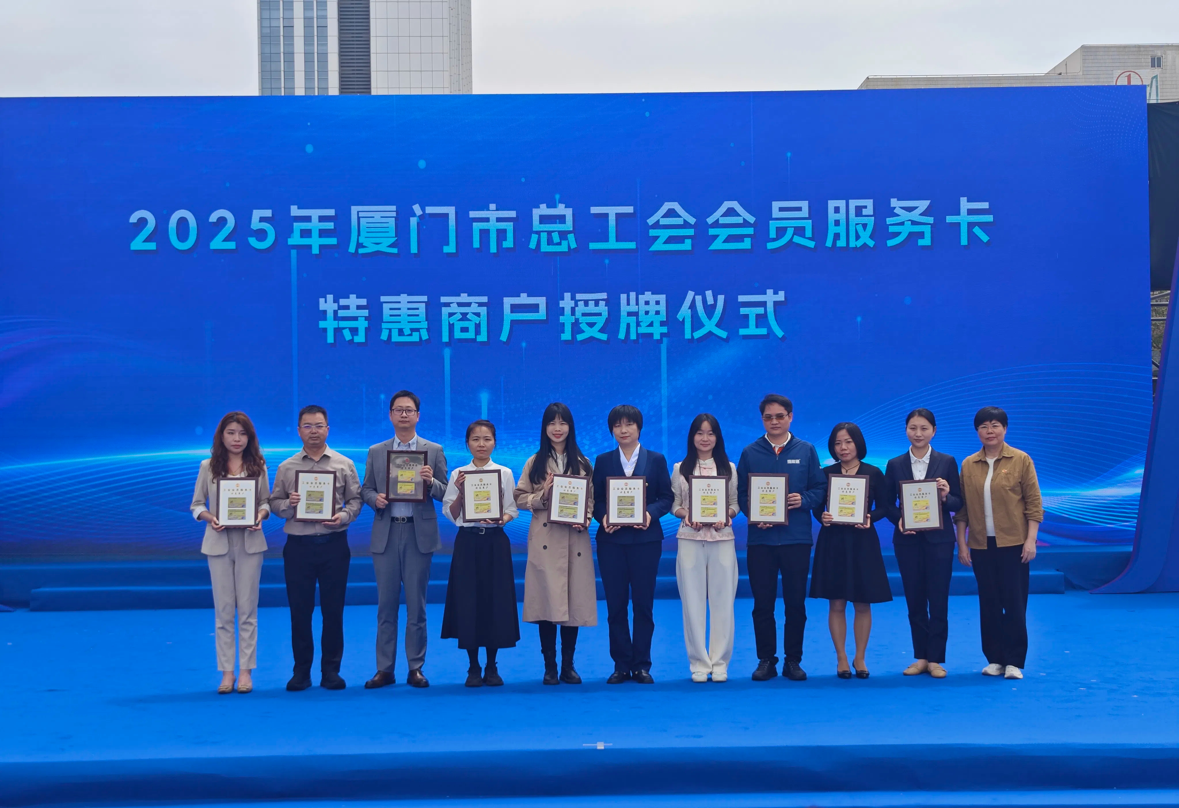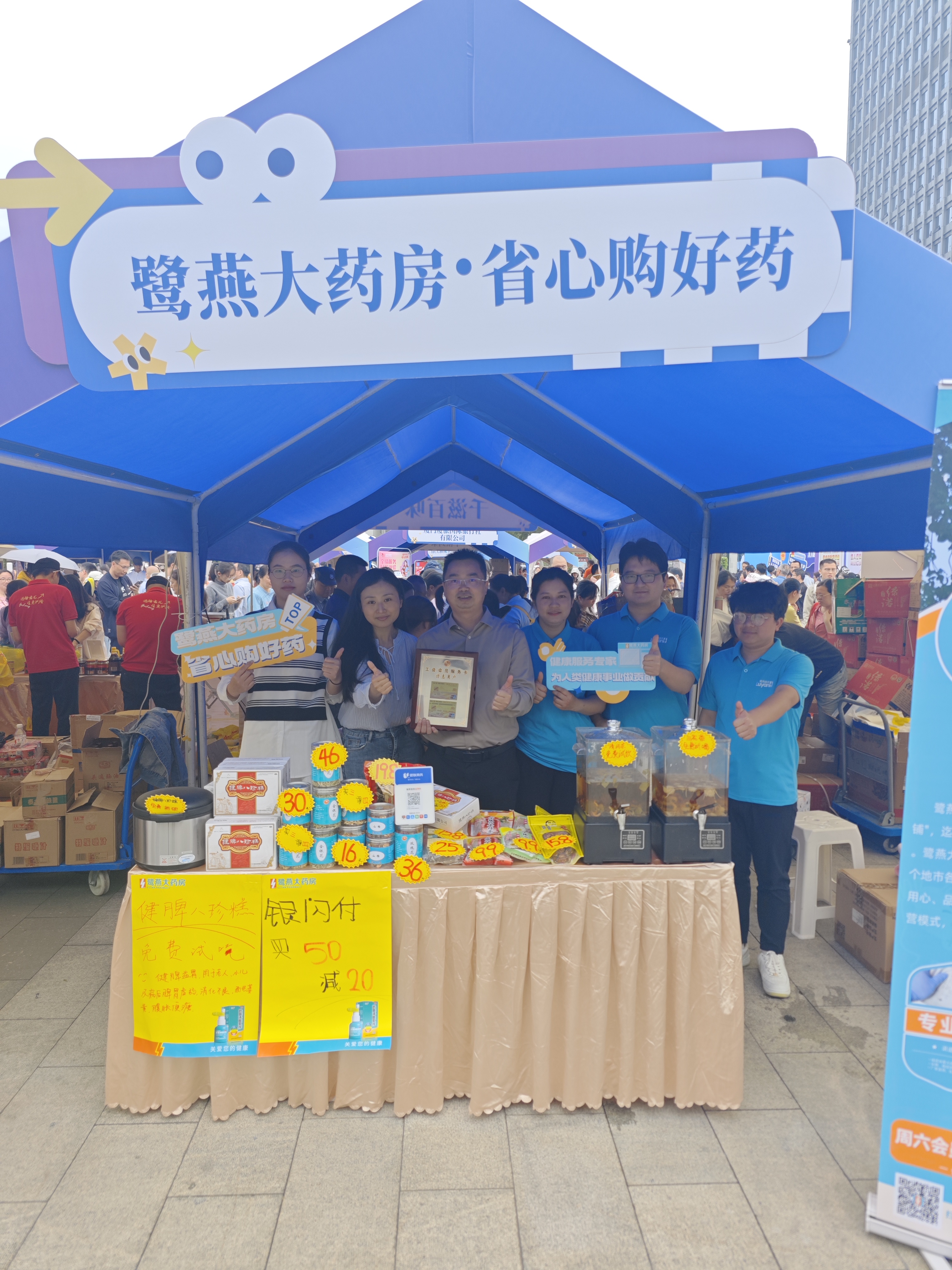 4月13日,由廈門市總工會(huì)指導(dǎo)、市機(jī)關(guān)事業(yè)工會(huì)聯(lián)合會(huì)主辦的“惠工聚益 共享美好”2025年工會(huì)集市活動(dòng)在五一廣場(chǎng)盛大啟幕。廈門鷺燕大藥房作為2025年“工會(huì)會(huì)員服務(wù)卡特惠商戶”首批新簽約的10家優(yōu)質(zhì)企業(yè)正式獲得授牌,并攜多項(xiàng)健康惠民服務(wù)亮相。